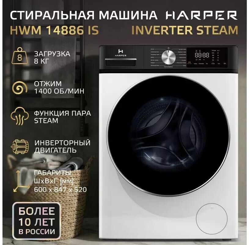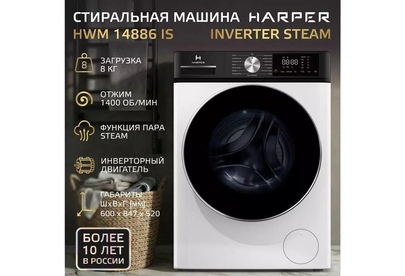 Машина стиральная фронтальная HARPER HWM 14886 IS Inverter Steam