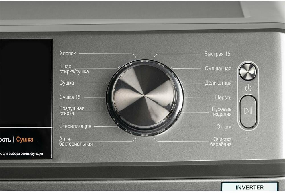 (ШхГхВ)59,5х64х85см. Цвет корпуса Темно-серый.Цвет люка Черный.Тип двигателя ИнверторныйТип привода Прямой привод.Управление Электронное сенсорное LED-дисплей.Максимальная загрузка белья при стирке (кг) 12.Максимальная загрузка белья при сушке (кг) 8.Максимальная скорость отжима (об/мин.) 1400 Количество программ стирки 14.Класс энергопотребления A+++.Энергопотребление (кВт*ч/год) 275.Потребление воды за 1 цикл стирки (л) 65.Класс стирки А.Класс отжима А.Класс сушки A.Диаметр дверцы (см) 52.Максимальный угол открывания дверцы люка (градусов) 150.Материал барабана Нержавеющая сталь.Уровень шума при стирке (дБ) 50.Уровень шума при отжиме (дБ) 72.Контроль пенообразования.Контроль дисбаланса.Контроль скорости отжима.Регулировка температуры стирки до 90 С.Индикация процессов и программ.Отсрочка старта Есть, до 24 ч.Блокировка от детей.Быстрая стирка 15 минут.Автодозировка стирального порошка i-Dos.Дополнительное полоскание.Дозагрузка