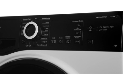 Загрузка 7 кг; Скорость отжима 1200 оборотов в минуту; Big DGT (большой цифровой) дисплей; Тип мотора: PRO-Inverter (инверторный); Сегмент: slim (узкая стиральная машина); Класс энергоэффективности: A; Класс энергопотребления: A-30%*; Класс стирки/отжима: A / B; Защита от протечек Eltek; Количество программ: 16, в том числе Освежить паром, 20°C, Удаление пятен, Хлопок, Синтетика, Микс тканей, Шерсть, Деликатное, Быстро 30’, Полная загрузка 45’, Антиаллергия, Пух/Перо, Белое, Эко Хлопок; Функция: Обработка паром; Функция: Быстро; Функция: Предварительная стирка; Функция: Дополнительное полоскание; Выбор температуры / скорости отжима; Отсрочка запуска / Блокировка кнопок. *на данное количество процентов показатели энергоэффективности лучше, чем у класса "А", определенного нормативными документами Российской Федерации