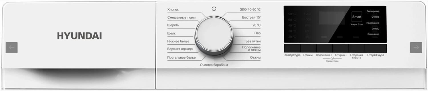 Машина стиральная фронтальная HYUNDAI WME7209 кл.:A+++ фронт. макс.:7кг белый инвертер