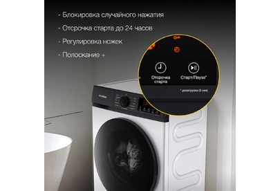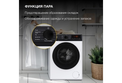 Стиральная машина, полноразмерная 50-60см, тип загрузки – фронтальная, максимальная загрузка – 8 кг, электронное управление, инверторный мотор, скорость отжима - 1200 об/мин, 12 программ, уровень шума при стирке - 56 дБ, защите от детей, отсрочка старта, максимальное время отсрочки – 24 часа, обработка паром, дозагрузка белья, класс энергопотребления – A, цвет – белый