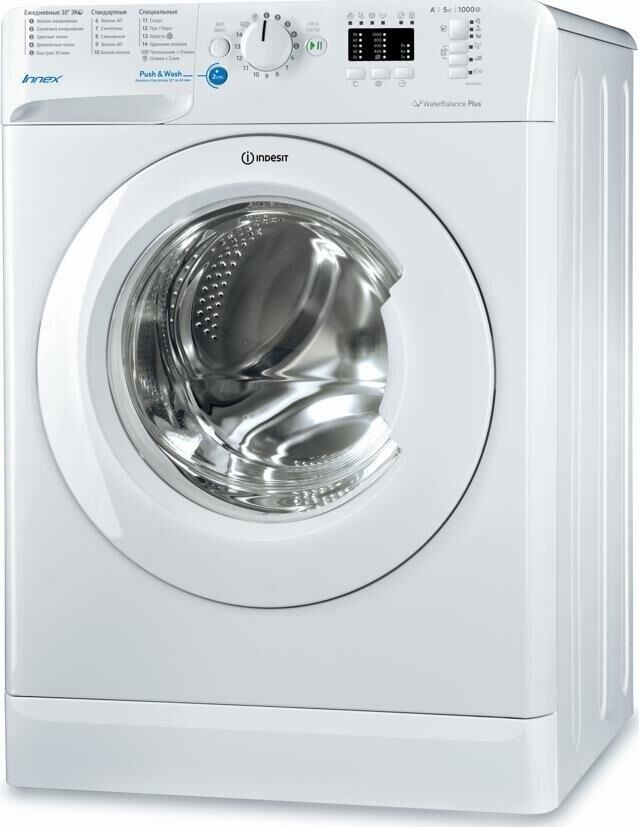 Загрузка 5 кг, 1000 об/мин, LED+ индикация, Тип мотора: инверторный, Технология Push & Wash, Датчик баланса воды WaterBalance Plus - регулировка расхода воды, 16 программ стирки. Специальные программы: Шерсть, Спорт, Пух/Перо, Удаление запахов. 5 программ Ежедневные 30 градусов Eco. Функции : Пятна, Дополнительное полоскание, Легкая глажка. Таймер отсрочки запуска (ч) : 3, 6, 9. Функция «Защита детей». Класс энергоэффективности А. Класс энергопотребления А-20%*. *на данное количество процентов показатели энергоэффективности лучше, чем у класса "А", определенного нормативными документами Российской Федерации.