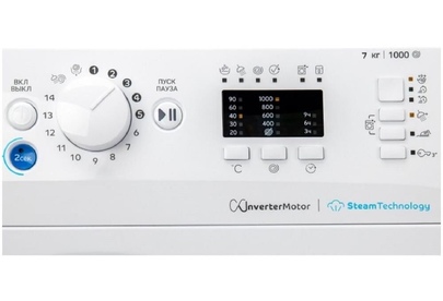 Загрузка: 7 кг, скорость отжима: 1000 об/мин, панель управления: LED+ дисплей, тип мотора: инверторный, сегмент: узкая стиральная машина, уровень шума при стирке/отжиме: 58/80 Дба, потребление воды за цикл: 52 л, потребление электроэнергии за цикл: 1,05 кВт/ч, кКол-во программ: 12, в том числе Хлопок, Синтетика, Цветные ткани, Деликатные ткани, Смешанное, Быстрая 30’, удаление запахов, функция: Push&Go Steam, функция: Отложенный запуск, функция: Выбор температуры, функция: Пятна, функция: Выбор скорости отжима, индикатор заблокированного люка, индикация стирки / полоскания / отжима / слива, защита от детей