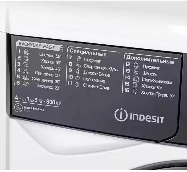 Загрузка 5 кг, коллекторный мотор, 800 об/мин, LED индикация,16 программ стирки, функции: Extra Wash, Дополнительное полоскание, Выбор температуры. Уровень шума при стирке/отжиме: 60/74 Дба. Потребление воды за цикл: 44л. Потребление электроэнергии за цикл: 0,95 кВт/ч. Класс энергоэффективности А. Класс энергопотребления А-10%*. *на данное количество процентов показатели энергоэффективности лучше, чем у класса "А", определенного нормативными документами Российской Федерации.