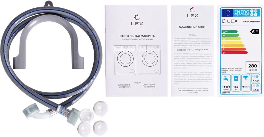Машина стиральная фронтальная LEX Стиральная машина LWM12012WBlID класс: A+++ загр.фронтальная макс.:12кг белый инвертор