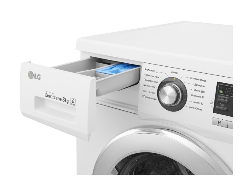 Габариты (ШxГxВ) 60x55x85 см Загрузка 8 кг Вес 62кг Макс отжима 1000 об/мин. Кол-во программ 13 Инверторный мотор с прямым приводом 6 движений заботы Мобильная диагностика Smart Diagnosis Предварительная стирка Без складок Интенсивная стирка Суперполоскание Класс энергоэффективности А Класс стирки А Класс отжима В Блокировка от детей Функция очистки барабана Цвет дверцы Хромированный Цвет корпуса Белый