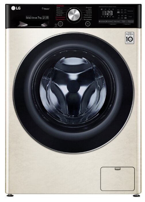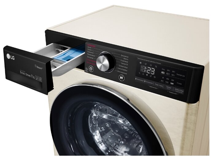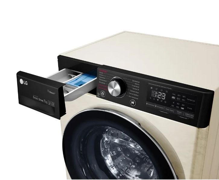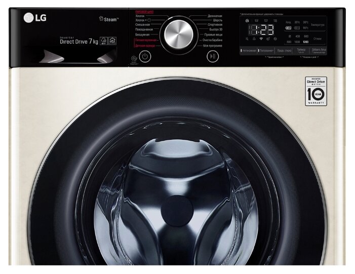 ШхГхВ: 60х45х85 см * Цвет бежевый * дозагрузка белья через основной люк * загрузка: 7 кг * Прямой привод * Инверторный двигатель * отжим при 1200 об/мин * Количество программ 14 * класс энергопотребления: A * Управление со смартфона * электронное управление * Контроль дисбаланса * защита от протечек * защита от детей * Дополнительная информация возможность управления через приложение SmartThinQ; технология LG Steam™; функция очистки барабана; Wi-Fi *