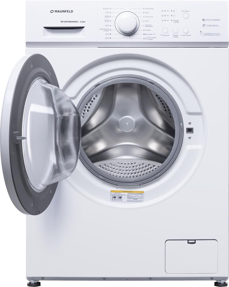 Машина стиральная фронтальная MAUNFELD Стиральная машина MFWM106WH051, с фронтальной загрузкой, 6кг, 1000об/мин