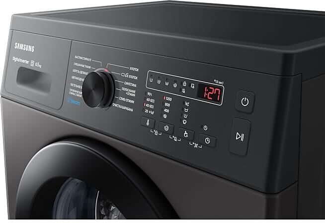 Габариты 600 x 850 x 450 * Загрузка 6.5 кг * Цвет : Инокс Черный люк * Скорость отжима 1200 об/мин * Инверторный мотор * Стирка с паром * Тип дисплея LED (сенсорная панель * Класс энергоэффективности (ERP) A+++ * Класс качества стирки A * Потребление воды (за цикл) 39 л * Уровень шума (стирка) 56 дБ. Уровень шума (отжим) 75 дБ * Тип барабана Diamond * Контроль напряжения * Всегда чистый лоток для моющих средств *