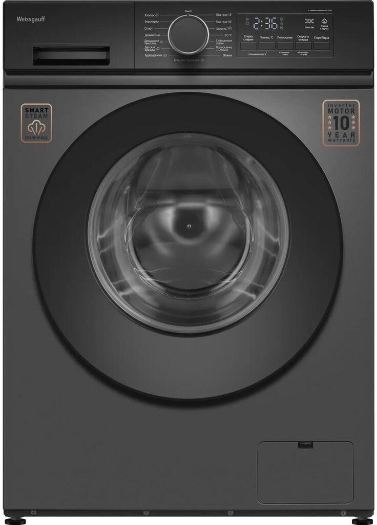Машина стиральная фронтальная WEISSGAUFF Стиральная машина WM 48128 Inverter Steam загр.фронтальная макс.:8кг темно-серый