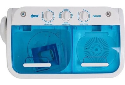 Стиральная машина, малогабаритная, активаторного типа. Максимальный объ м закгрузки до 2кг. Управление механическое. Режим стирки реверсивный, таймер временем стирки до 8 мин. Количество режимов стирки 1. Без отжима.
