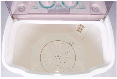 (ШхГхВ)41х33х63,5см.Цвет белый с полупрозрачными окошками.Загрузка сухого белья в бак стирки, до (кг): 3.Максимальная потребляемая мощность (Вт): 200.Тип активаторный.Загрузка вертикальная.Тип активаторный.Загрузка вертикальная. Реверс, снижающий эффект закручивания белья.Двигатель повышенной мощности. Материал корпуса полипропилен.Фильтр для сбора ворса и пуха .
