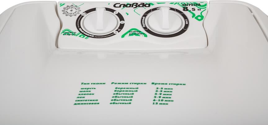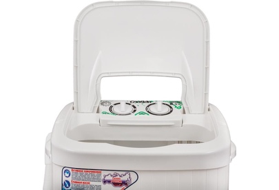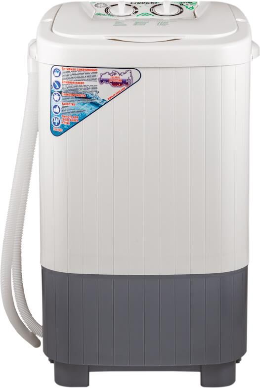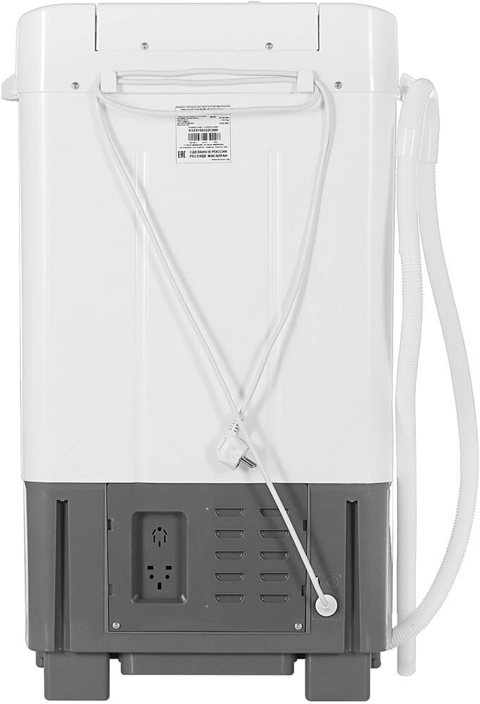 (ШхГхВ) 53х44х87,0см.Белый, крышка глухая белая Тип активаторный Загрузка вертикальная Загрузка сухого белья в бак стирки, до 8.5кг Количество программ стирки 2 Таймер стирки 15мин Двигатель повышенной мощности Материал корпуса полипропилен Класс безопасности IP54 Фильтр для сбора ворса и пуха Максимальная потребляемая мощность (Вт)360