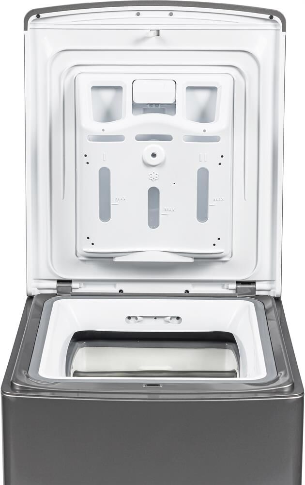 Стиральная машина с вертикальной загрузкой и инверторным мотором • цвет Металлик • загрузка 8 кг • 1300 об/мин • обработка паром • габариты 87,5x40х60 см • 16 программ • LED дисплей