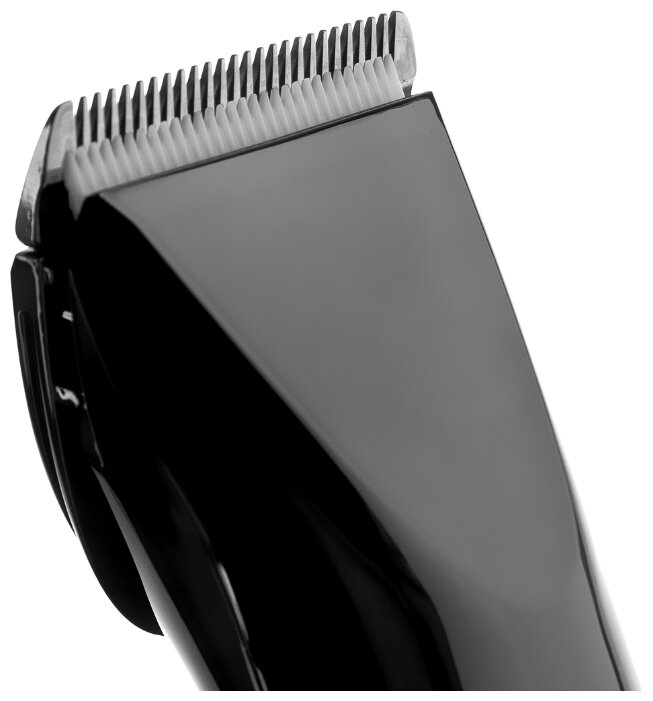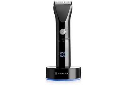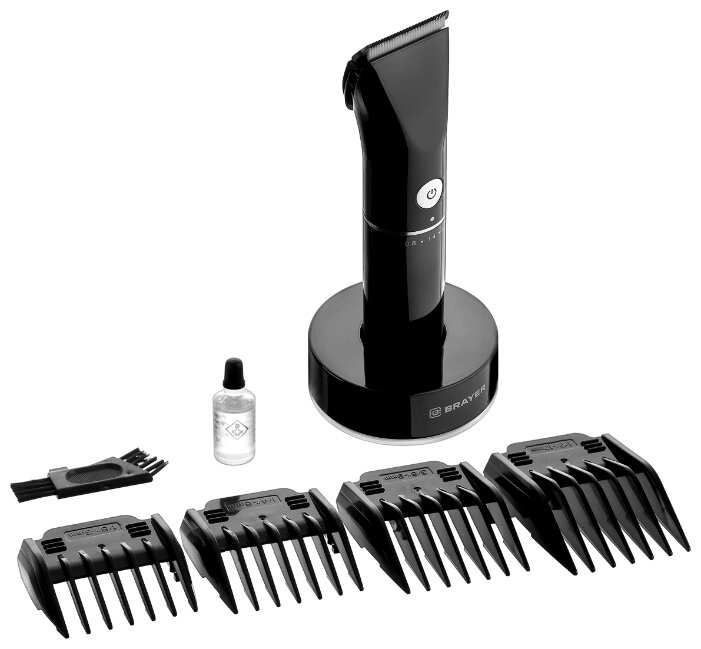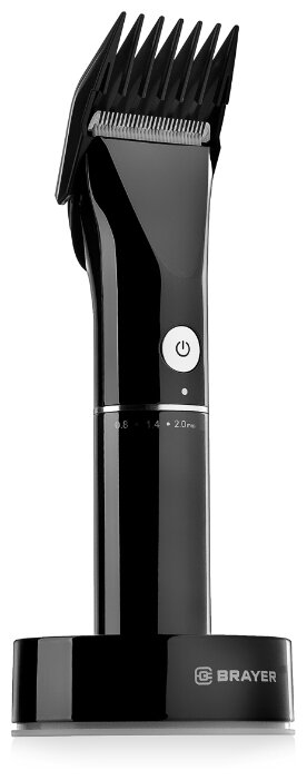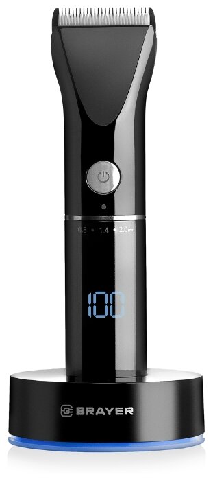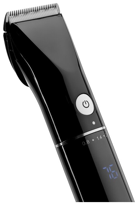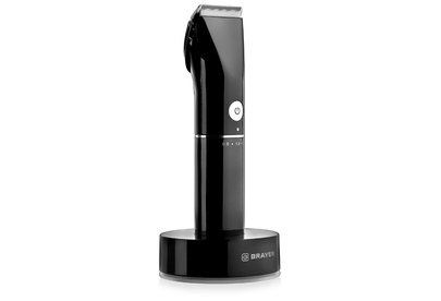 Фиксированные лезвия из высококачественной стали с титановым покрытием. Керамические подвижные лезвия. Установка длины поворотом корпуса 0.8 мм.,1.4 мм., 2.0 мм. 4 съёмные насадки 3 мм., 6 мм., 9 мм., 12 мм. Литиевая батарея 1*700мАч. Турборежим. Время заряда батареи 1,5 часа. Время непрерывной работы 1 час. LED-дисплей. Поворот базы на 360°С. Индикация уровня заряда. Индикатор включения блокировки. Возможность работы от сети и от аккумулятора. Удобная подставка для подзарядки и хранения. Аксессуары: щёточка, смазочное масло. Мощность 3 Вт. Электропитание: 220-240 В., ~50-60 Гц.