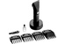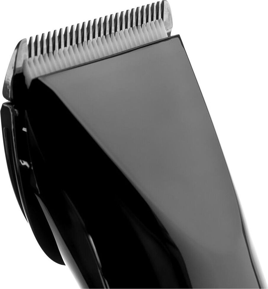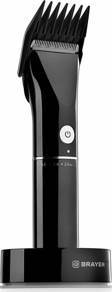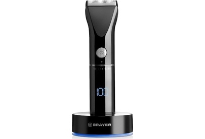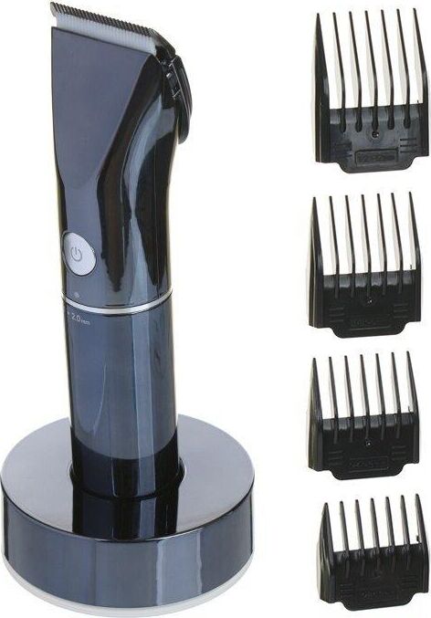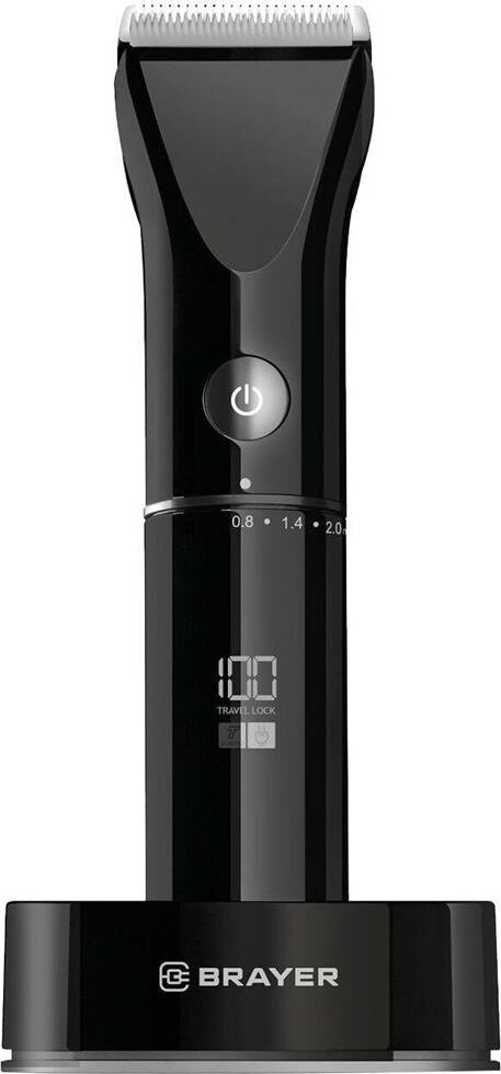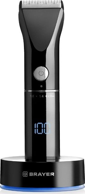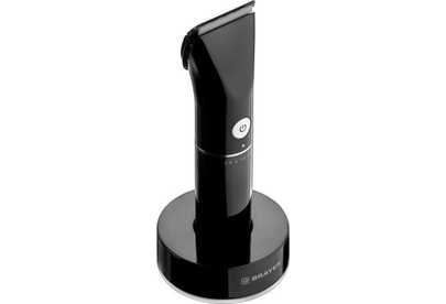 Фиксированные лезвия из высококачественной стали с титановым покрытием. Керамические подвижные лезвия. Установка длины поворотом корпуса 0.8 мм.,1.4 мм., 2.0 мм. 4 съёмные насадки 3 мм., 6 мм., 9 мм., 12 мм. Литиевая батарея 1*700мАч. Турборежим. Время заряда батареи 1,5 часа. Время непрерывной работы 1 час. LED-дисплей. Поворот базы на 360°С. Индикация уровня заряда. Индикатор включения блокировки. Возможность работы от сети и от аккумулятора. Удобная подставка для подзарядки и хранения. Аксессуары: щёточка, смазочное масло. Мощность 3 Вт. Электропитание: 220-240 В., ~50-60 Гц.