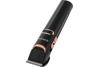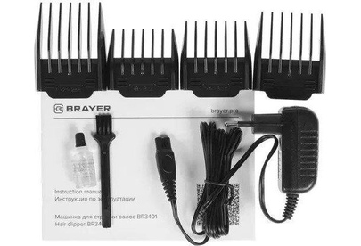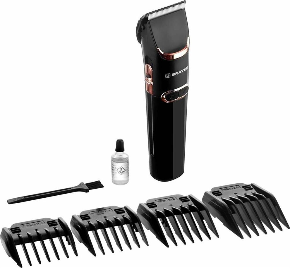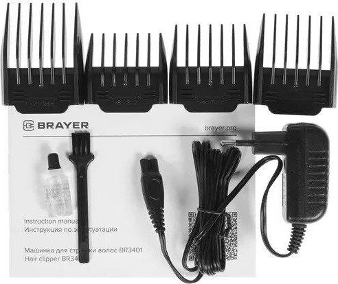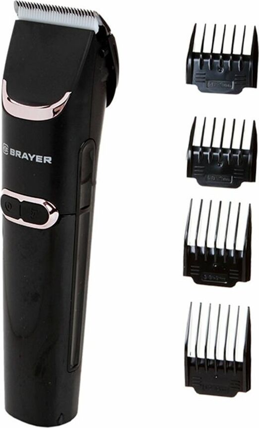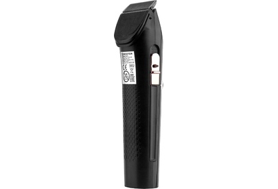 Фиксированные лезвия из высококачественной стали с титановым покрытием. Керамические подвижные лезвия . Установка длины на корпусе 1.0 мм., 1.3 мм., 1.6 мм., 1.9 мм. 4 съёмные насадки 3 мм., 6 мм., 9 мм., 12 мм. Турборежим. Время зарядки 1,5 часа. Время непрерывной работы 1 час LED-дисплей. Индикация уровня заряда. Возможность работать от сети и от аккумулятора. База для зарядки. Литиевая батарея: 1*700 мАч. Аксессуары: щёточка, смазочное масло. Мощность 3 Вт. Электропитание: 220-240 В., ~50-60 Гц.