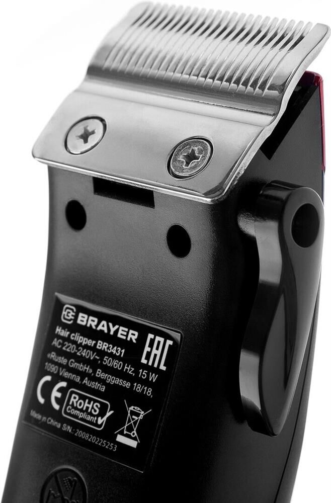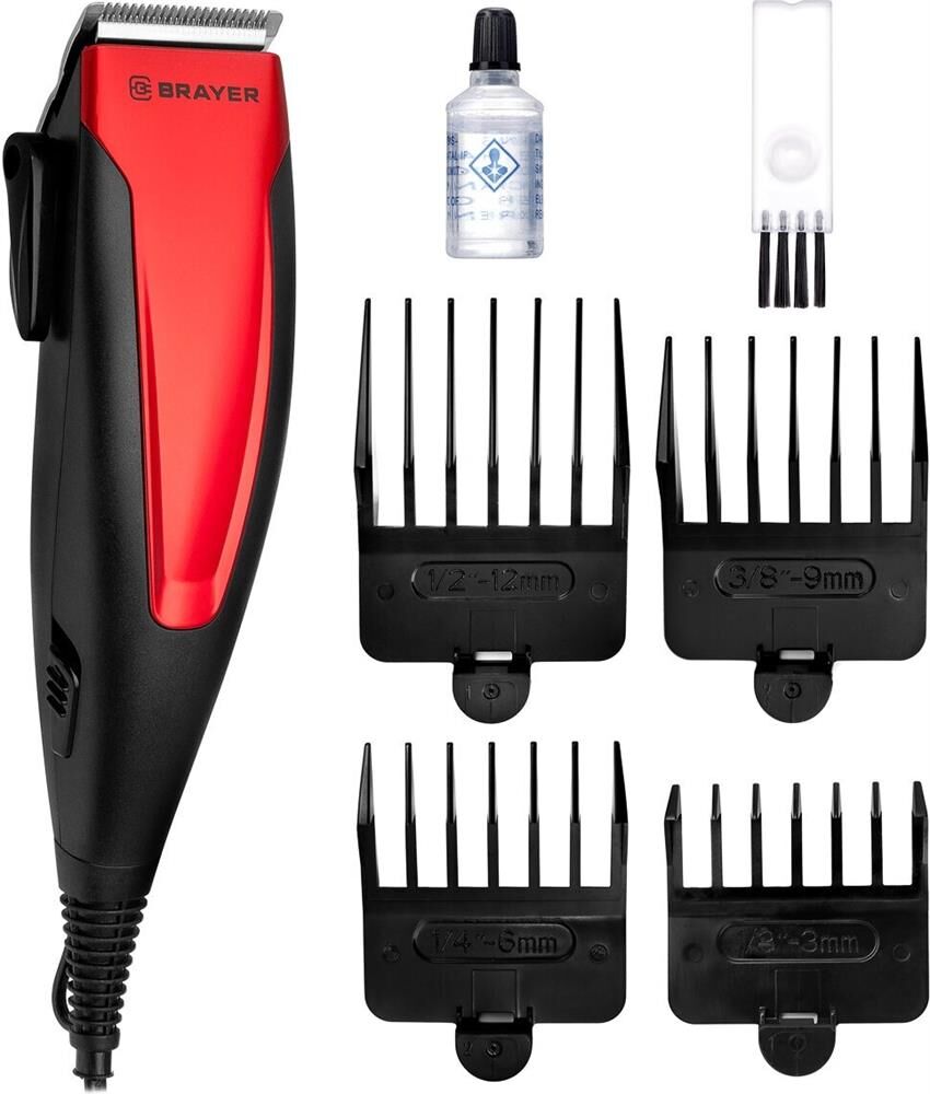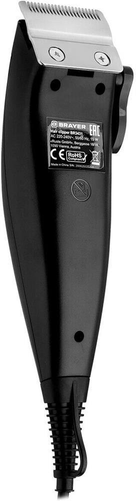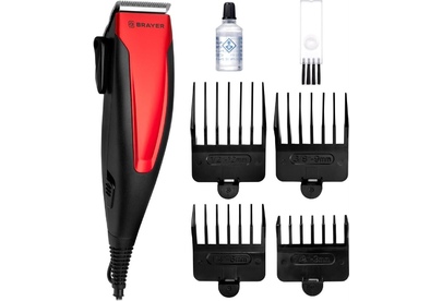 Фиксированные лезвия из высококачественной стали Подвижные лезвия из высококачественной стали Регулировка длины 4 съёмные насадки 3 мм, 6 мм, 9 мм, 12 мм Работает от сети Аксессуары: щёточка, смазочное масло Электропитание 100-240 В, ~50-60 Гц