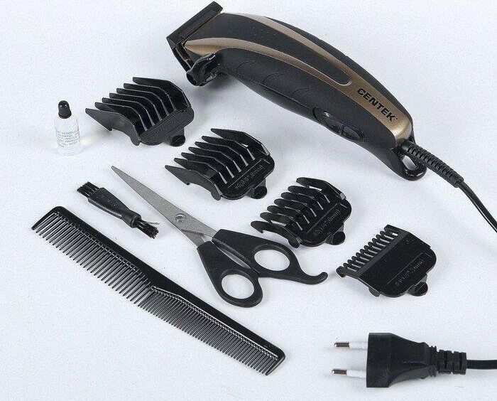 Машинка для стрижки Centek CT-2110 (серый/черный) титановые ножи, прорезиненный корпус Мощность12 Вт Удобная в обращении Эргономичный дизайн Регулировка длинны среза Высококачественные лезвия Прочные титановые лезвия Удобная кнопка включения Комплект аксессуаров Ножницы Масло Щеточка Расческа 4 насадки