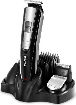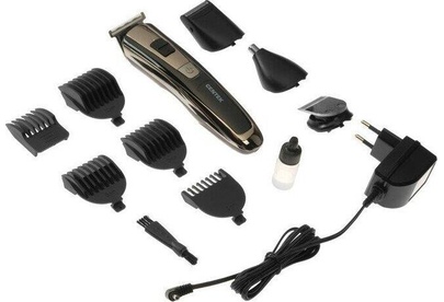 Мощность 3 Вт, Непрерывная работа 45 мин., Полная зарядка 8 ч., База с подзарядкой , Индикатор зарядки , Насадка для стрижки, Насадка-стайлер, Бритвенная насадка, Триммер для носа и ушей, Щеточка, Масло, 4 насадки(3,6,9,12 мм).