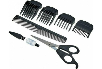 Параметры Номинальная потребляемая мощность 10 Вт Описание Машинка используется для стрижки натуральных волос и предназначена для бытового и аналогичного применения Электропитание от сети 220В ~ 50Гц Корпус из высококачественного пластика Цвет: синий Вставка на корпусе с противоскользящим покрытием Лезвия из нержавеющей стали Защитная крышка для лезвий Регулировка длины срезаемых волос Четыре съёмных гребня: 3, 6, 9, 12 мм Расческа Ножницы Масленка Щеточка для чистки лезвий Петелька для подвешивания