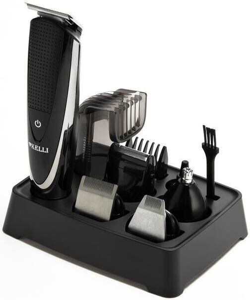 ПРОФЕССИОНАЛЬНЫЙ НАБОР ДЛЯ СТРИЖКИ Мощность: 45Вт.Подставка для хранения.Стильный дизайн.Съемные насадки.Насадка для стрижки волос.Триммер для бороды.Насадка для окантовки.Насадка для бритья.Триммер для носа и ушей Масленка. Щеточка для чистки лезвий Продолжительность работы: 25-30 минут Время зарядки аккумулятора: 6-8 часов. USB кабель, длина 1 м 5V DC/2W 1x Ni-MH AA600vAh 1.2V