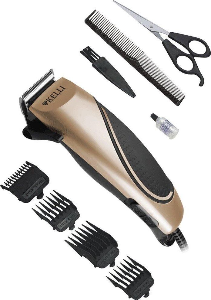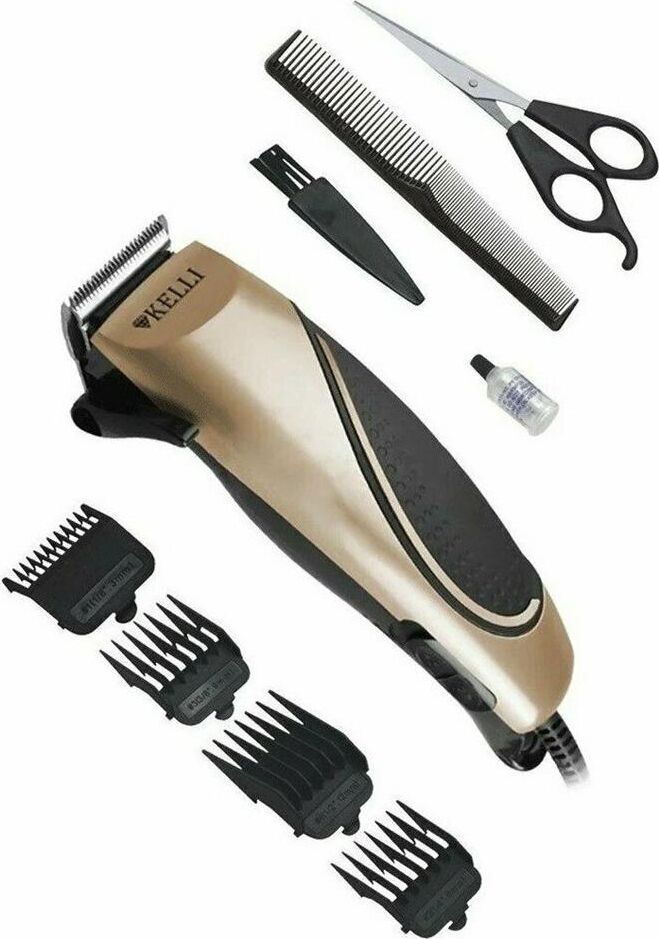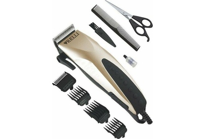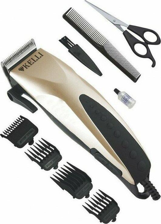 Машинка для стрижки Мощность: 220-240В, 50Гц, 45Вт Цвета: голубой, бронзовый 4 съемных гребня (3,6,9,12мм) Лезвия из нержавеющей стали Рычаг перемещения лезвия Переключатель Вкл./Выкл. Защитная крышка для режущих лезвий Регулировка длины срезаемых волос Расчёска, ножницы, масленка Щетка для чистки лезвий Удобная петелька для подвешивания