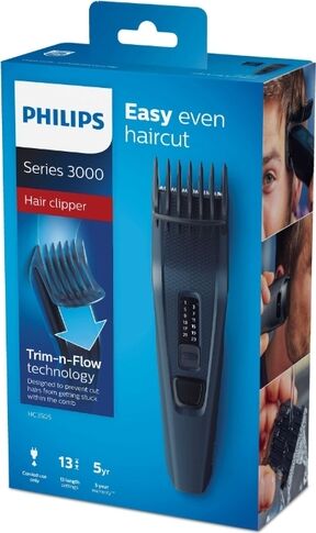 PHILIPS HC3505/15 Машинка для стрижки волос, Вес - 0.345 кг, Питание от сети, Кол-во настроек длины - 13, Максимальная длина волос - 23 мм, Регулировка - 2 мм, Лезвия из нержавеющей стали.