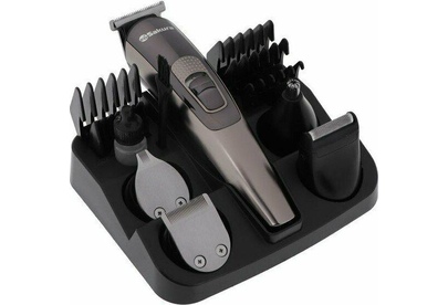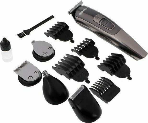 автономная работа от аккумулятора до 45 минут без подзарядки, универсальный триммер 5 в 1; 9 насадок (4 гребней 3-12 мм, круглая насадка-триммер, 3 плоские насадки, насадка-бритва)