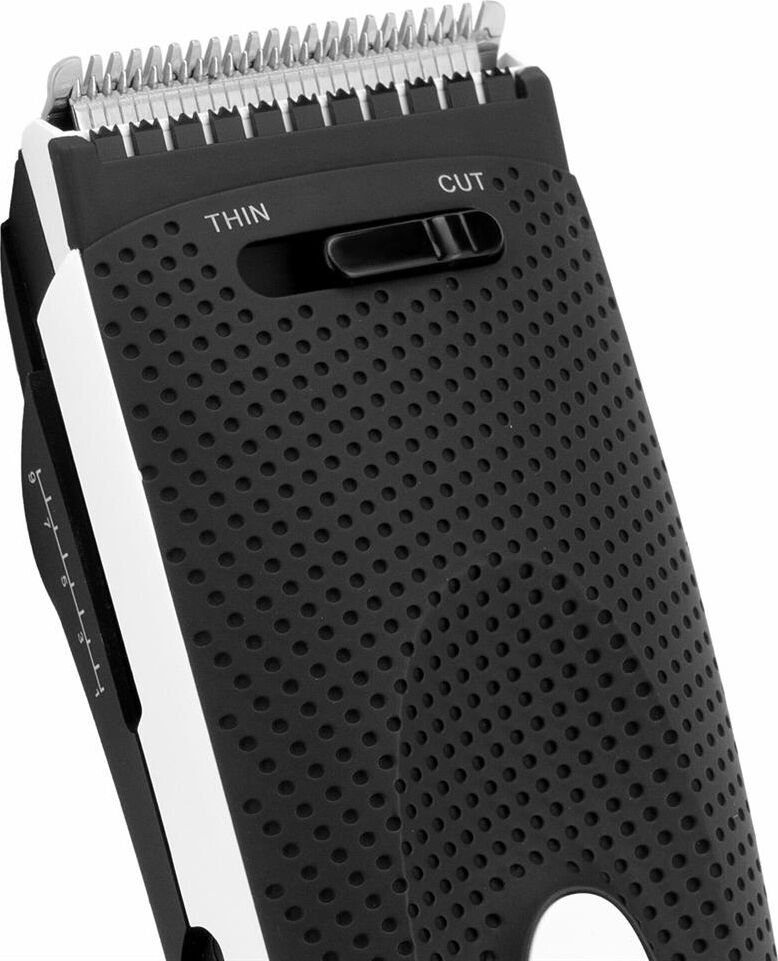 Питание сеть/аккумулятор. Время автономной работы 45 мин. Время зарядки 8 ч. Индикация уровня зарядки батареи. Максимальная длина стрижки 30 мм. Материал лезвий высококачественная сталь. Минимальная длина стрижки 3 мм. Способ регулировки длины регулятором и сменой насадок. Функция филировки. 2 насадки. Число установок длины 18. Подставка для зарядки.