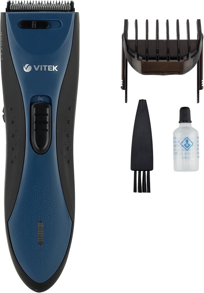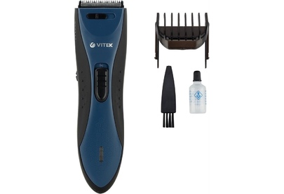 Машинка для стрижки волос. Материал лезвий: высококачественная сталь, Число насадок 1шт, Число установок длины: 6, Максимальная длина стрижки - 18 мм, Минимальная длина стрижки 3 мм, Питание от аккумулятора (NiMh 1x1,2V AA 600mAh), Время автономной работы до 35 минут, Время зарядки 8 часов, Способ регулировки длины: телескопическая насадка, Функция филировки. Цвет: Синий/черный.