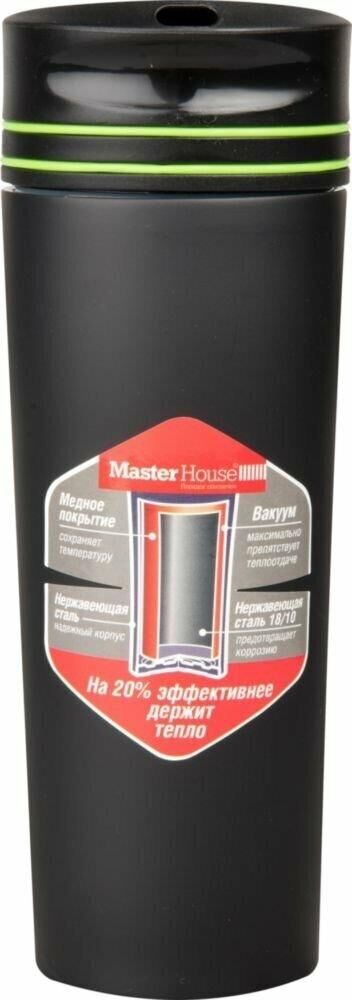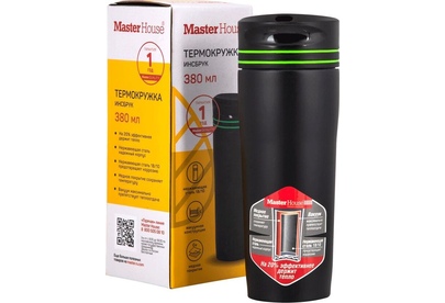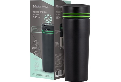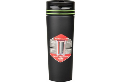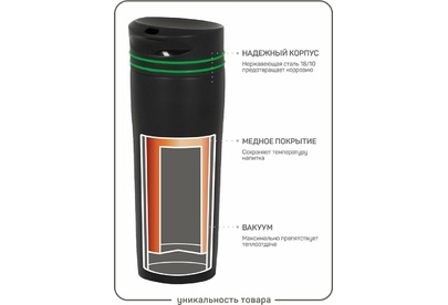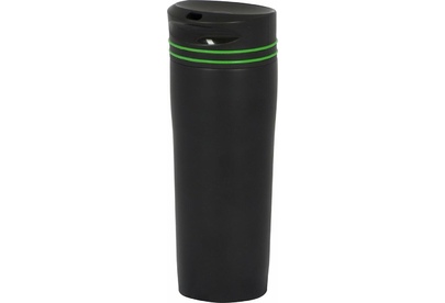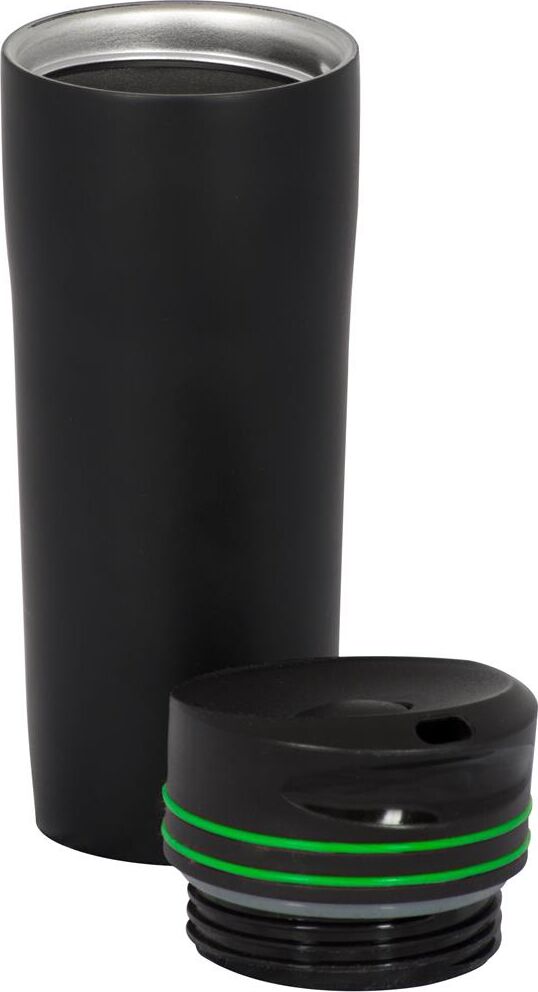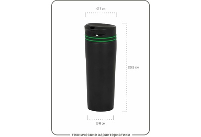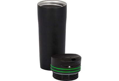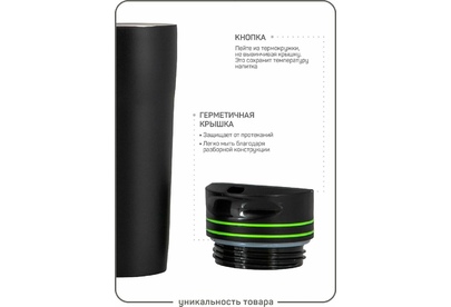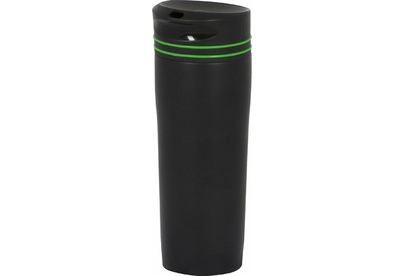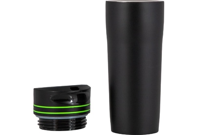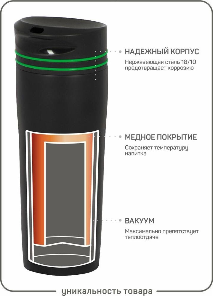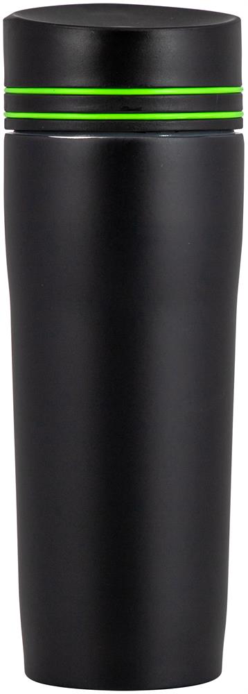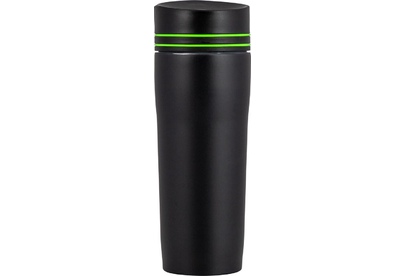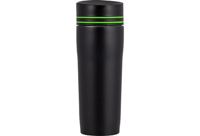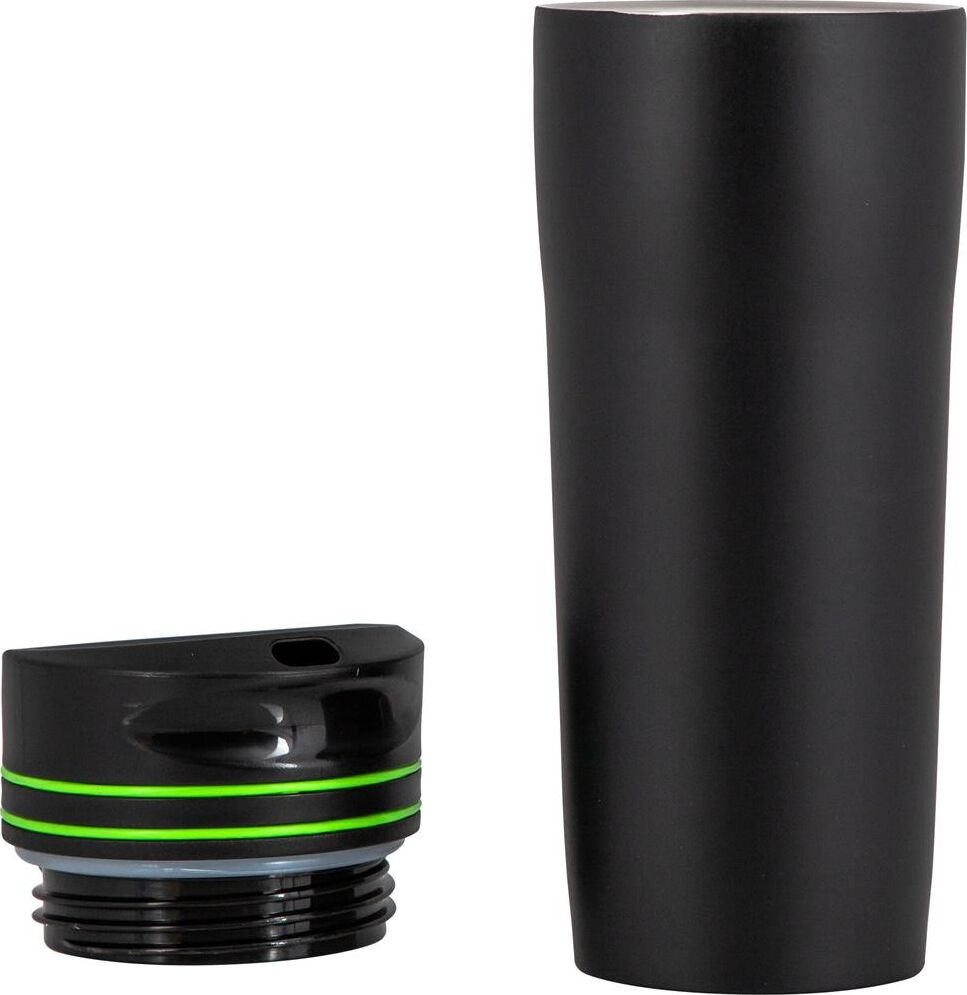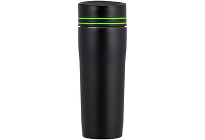 Термокружка из нержавеющей стали. Объем 380мл. Внутренняя колба из стали AISI 304 (аналог ГОСТ 08Х18Н10). Цвет: черный с зелеными полосками