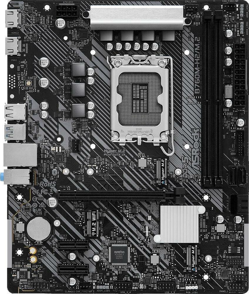 Общая информацияДата выхода на рынок2023 г. Информация? Поддержка 14th, 13th & 12th-е поколение Intel® Core™ (LGA1700) ? 5+1+1 Power Phase ? Поддержка DDR5 7200+ (OC) ? 1 PCIe 4.0 x16, 2 PCIe 3.0 x1, 1 M.2 Key E для поддержки WiFi ? Устройство графического вывода данных: 2 HDMI ? Realtek ALC897 7.1-канальный HD-кодек Codec ? 4 SATA3, 2 Hyper M.2 (PCIe Gen4 x4) ? 6 USB 3.2 Gen1 Type-A (4 Rear, 2 передних) ? 6 USB 2.0 (2 Rear, 4 Front) ? Dragon 2.5G LAN ?