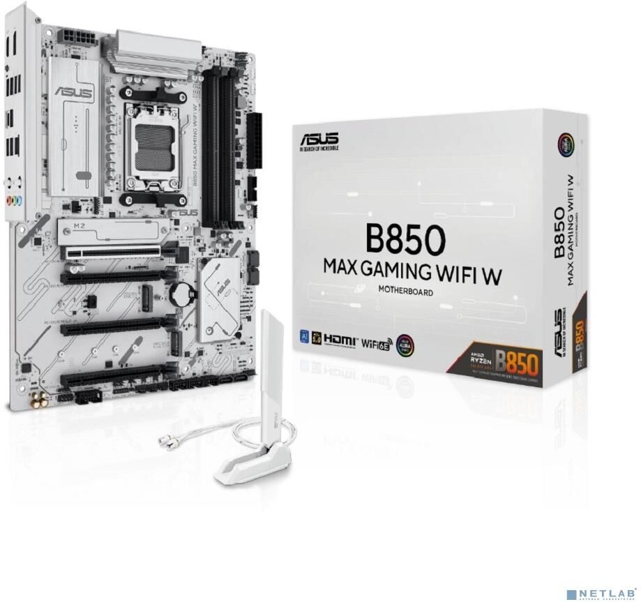 [Материнская плата] ASUS B850 MAX GAMING WIFI W (Socket AM5, ATX, 4xDDR5(256GB), DP/HDMI 2.1, 1xPCIe 5.0x16/1xPCIe 4.0x16/2xPCIe 3.0x16, 1xLAN (2.5GbE), Wi-Fi, BT, 4xSATA 6Gb/s, 3xM.2, 1*Type-C, 5xUSB 3.2, 2xUSB 2.0)