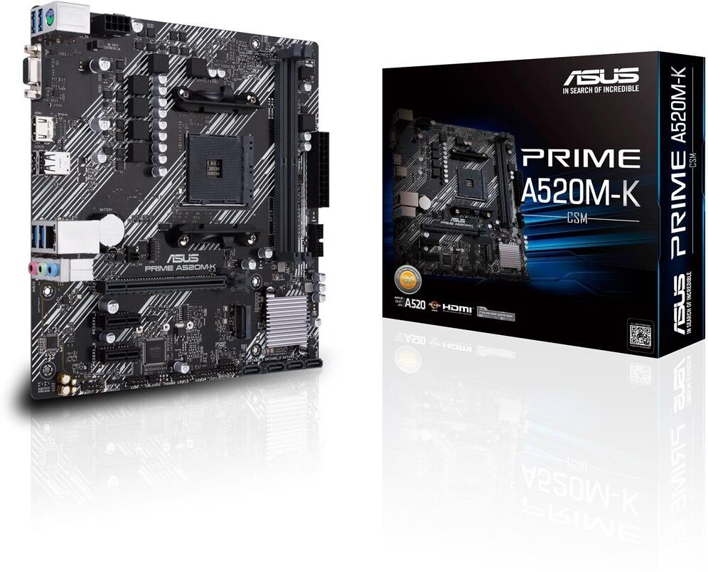 Материнская плата Asus PRIME A520M-K RTL Soc-AM4 AMD A520 2xDDR4 mATX AC`97 8ch(7.1) GbLAN RAID+VGA+DVI+HDMI