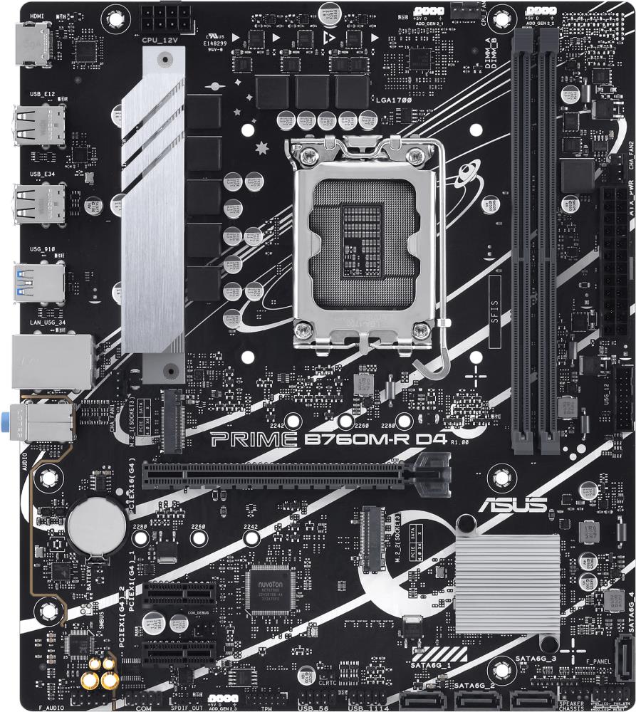 Материнская плата ASUS PRIME B760M-R D4, LGA1700 2xDDR4 4xSATA3 2xM.2 RAID VGA HDMI mATX