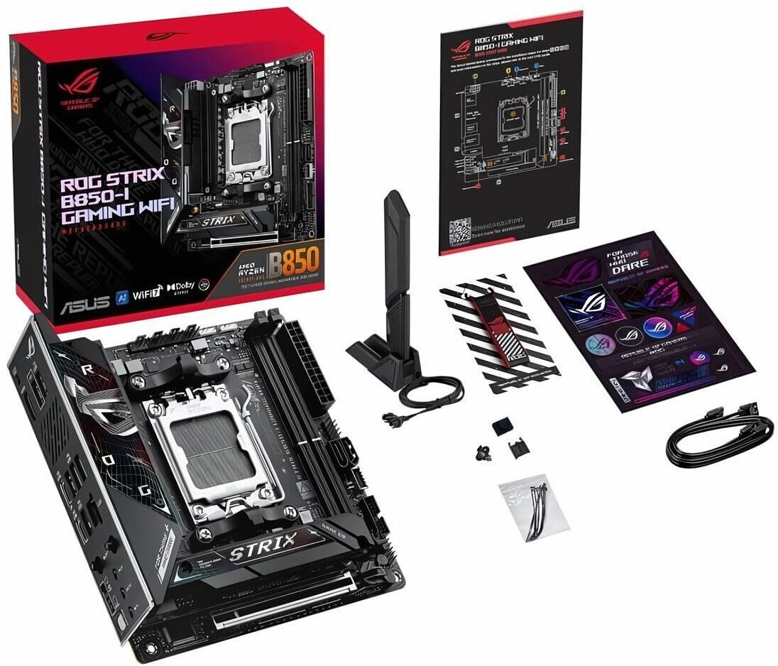 [Материнская плата] ASUS ROG STRIX B850-I GAMING WIFI (Socket AM5, mITX, 2xDDR5(128GB), HDMI/USB 10Gbps, 1xPCIe 5.0x16/1xLAN (2.5GbE), Wi-Fi 7, 2xSATA 6Gb/s, 2xM.2, 2xType-C, 4xUSB 3.2, 2xUSB 2.0)