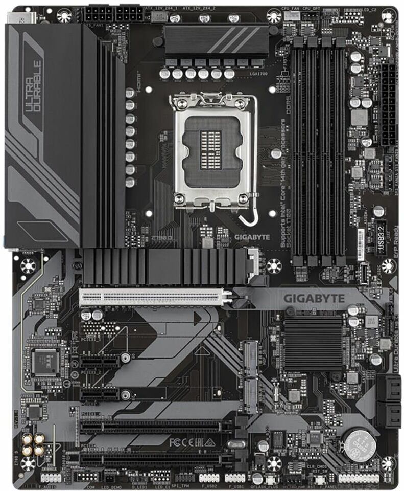 **Материнская плата Gigabyte Z790 D, RTL** Материнская плата Gigabyte Z790 D — это высококачественное и надёжное решение для сборки мощного компьютера. Она поддерживает современные процессоры Intel и обеспечивает стабильную работу системы. **Основные характеристики:** * Форм-фактор: ATX. * Чипсет: Intel Z790. * Поддержка процессоров: Intel. * Слоты памяти: DDR4. * Количество слотов памяти: зависит от конфигурации. * Тип разъёма для процессора (сокет): LGA 1700. * Аудиокодек: Realtek ALC897.