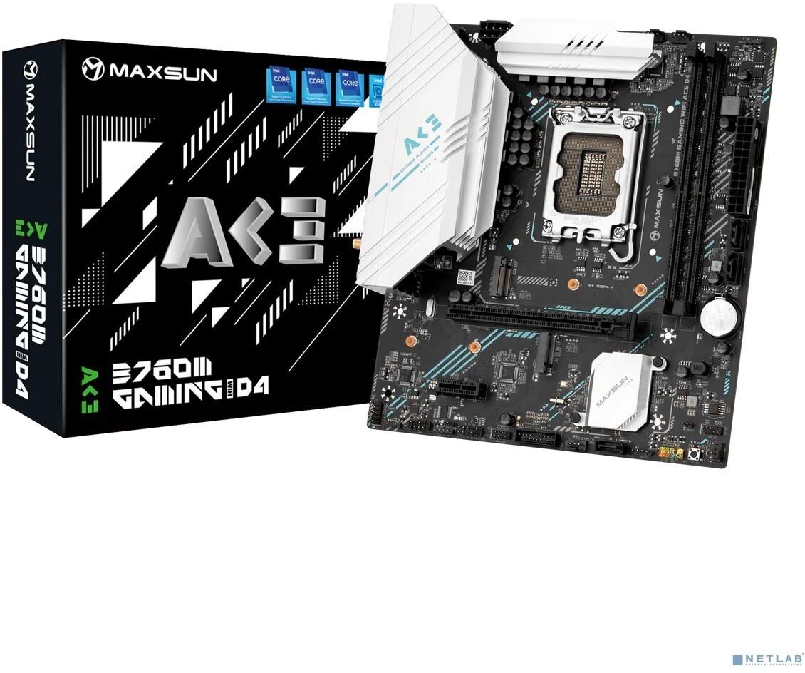 [Материнская плата] MAXSUN MS-B760M GAMING WIFI ACE D4 (Socket 1700, mATX, 2*DDR4(64b), DP/HDMI, 3*SATA3, 2*M.2, 1xPCI-E x16 /1xPCI-E x4, 2*USB 2.0, 4*USB 3.2 GEN2, LAN 1*1G, Bluetooth, Wi-Fi 802.11ax, RTL)