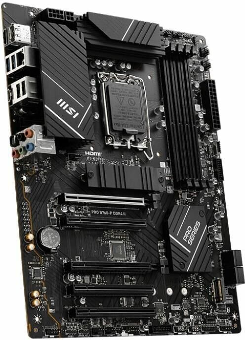 Материнская плата MSI PRO B760M-P DDR4 – производительная и надежная основа для сборки профессиональной рабочей станции. Она выполнена в компактном форм-факторе и поддерживает работу с процессором Intel Core 12/13/14-го поколения. Модель отличается наличием 4 модулей DIMM DDR4, 1 слотом расширения PCI-E x16, 2 разъемами M.2 и 4 слотами SATA. MSI PRO B760M-P оборудована сетевым адаптером со скоростью 1 Гбит/с для соединения с Интернетом. Качественная элементная база с протестированными компонентами гарантирует исключительную надежность. С помощью фирменного ПО можно осуществлять мониторинг и управлять параметрами ПК.