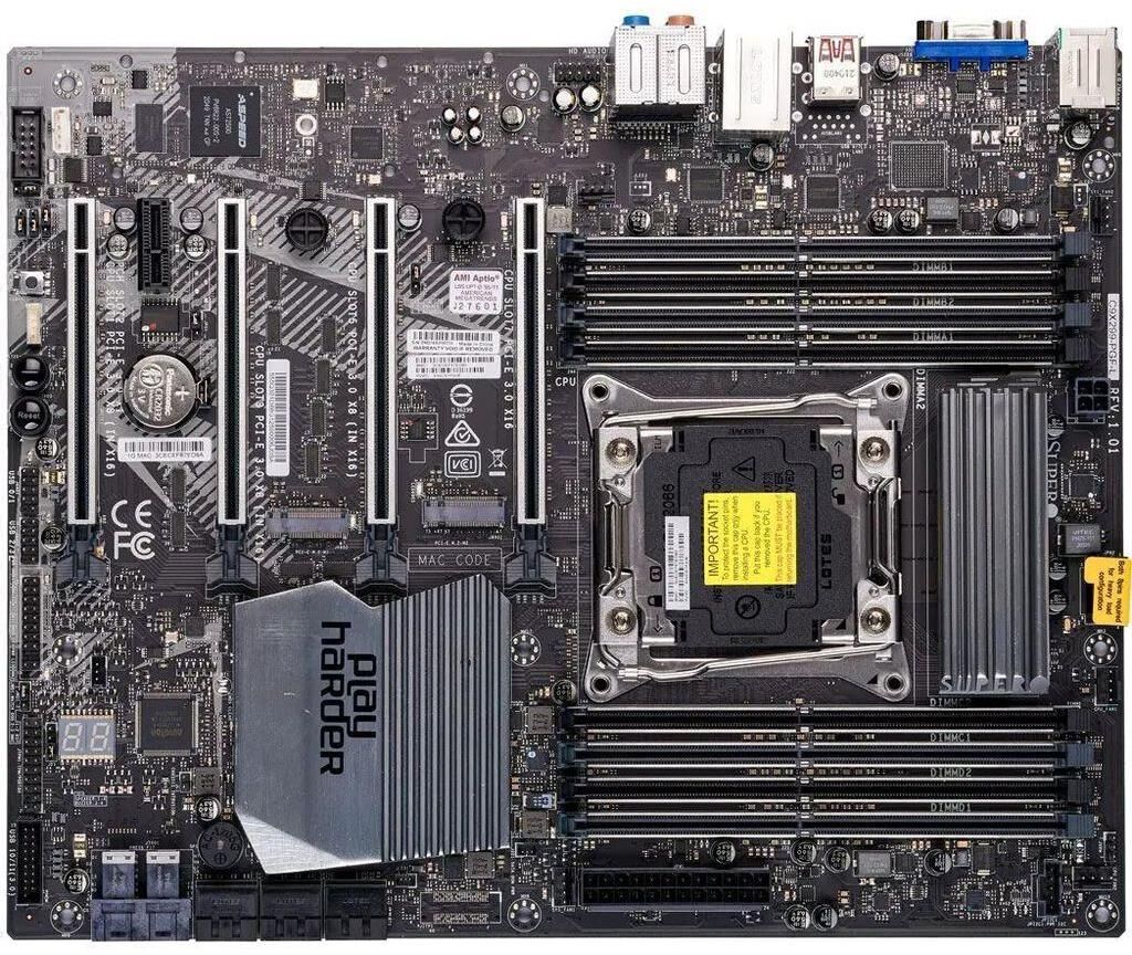 Socket: LGA 2066. Количество сокетов: 1. Совместимость с комплектующими: совместимость уточняйте на сайте производителя. Совместимость с операционными системами: совместимость уточняйте на сайте производителя. Поддерживаемые процессоры: совместимость уточняйте на сайте производителя. Northbridge: Intel X299. Интегрированное видео в чипсет: есть. Модель интегрированного видео в чипсет: Aspeed AST2500. Объем используемой оперативной памяти графическим ядром: 0.06. Тип поддерживаемой памяти: DIMM. Частотная спецификация памяти: 2933. Поддержка частот оперативной памяти: 2933/2666/2400/2133/1866/1600 МГц. Поддерживаемые модули памяти: совместимость уточняйте на сайте производителя. Максимальный объем оперативной памяти: 256. Разъемов SATA3: 6. Поддержка SATA RAID: есть. Поддержка RAID 0: есть. Поддержка RAID 1: есть. Поддержка RAID 5: есть. Поддержка RAID 10: есть. Кол-во внешних USB 3.0: 2. Разъемов D-Sub (VGA): 1. Сетевой интерфейс: 2 х Gigabit Ethernet. Сетевой контроллер: Intel i210AT. Звук: 8 каналов (7.1).