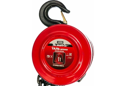 MATRIX 519335 Таль цепная, 1 т, H подъема 2,5 м, расстояние между крюками 300 мм