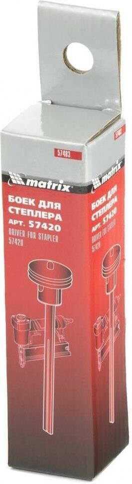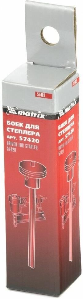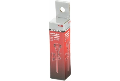 Боек Matrix 57483 предназначен для установки на пневматический степлер 57420. Снабжен уплотнительным кольцом, обеспечивающим стабильную работу инструмента при давлении до 10 МПа и температуре воздуха до -20 градусов C.ПреимуществаПрочность и высокий ресурс — стальной боек твердостью не менее 45 HRC выдерживает ударные нагрузки, устойчив к коррозии и механическим повреждениям.Эффективная работа — идеальная геометрия бойка исключает заклинивание и поломку скоб.Вес 320 г — боек не утяжеляет конструкцию степлера, что позволяет долго работать без усталости.