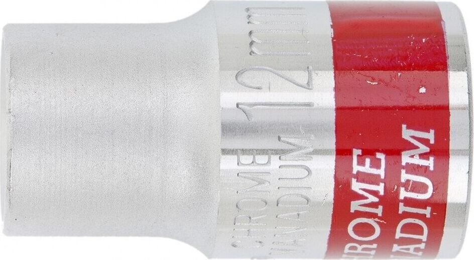 Хромированная торцевая головка Matrix 13112 из стали CrV, размером 12 мм, с 6-гранным профилем и посадочным квадратом 1/2"" — оснастка для слесарного инструмента, предназначенная для монтажа и демонтажа резьбовых соединений. Динамический шестигранный профиль обеспечивает максимальный контакт с головкой крепежа, что уменьшает ее деформацию при высоких нагрузках. Насадка пригодится для проведения монтажных и ремонтных работ дома, на даче или в гараже.ПреимуществаПрочность — оснастка выполнена из хромованадиевой стали, а твердость ее рабочей части составляет 42 HRC.Защита от разрушения — полированное хромоникелевое покрытие предохраняет торцевую головку от образования коррозии.Быстрый поиск насадки среди других инструментов — торцевая головка маркирована красной полосой, на корпус нанесено обозначение типоразмера.