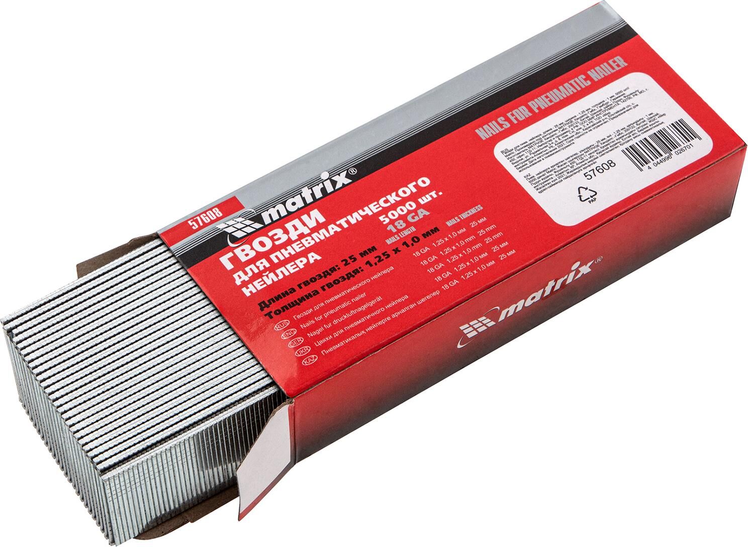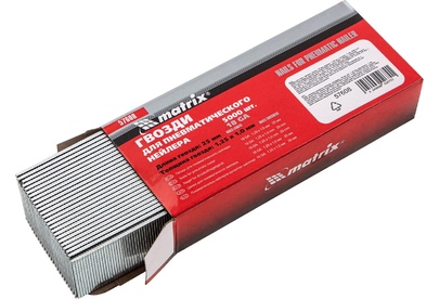 MATRIX Гвозди для пневматического нейлера, длина 25 мм, ширина 1.25 мм, толщина 1 мм, 5000 шт 57608