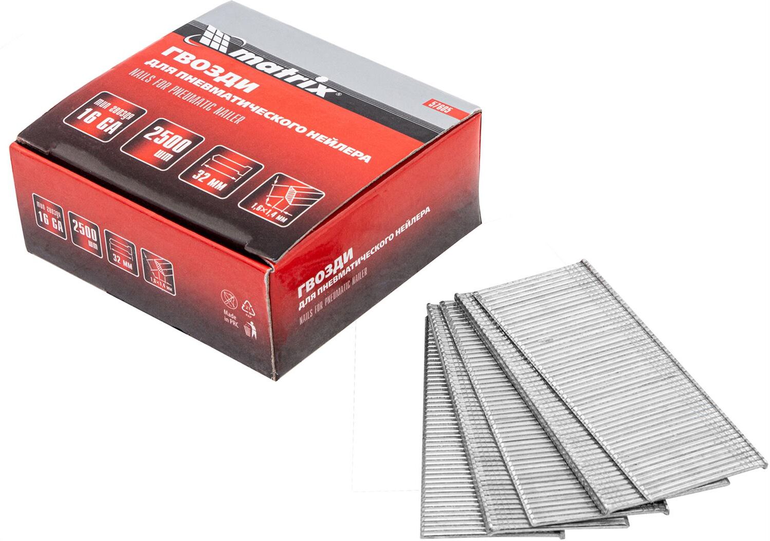 MATRIX Гвозди для пневматического нейлера 16GA, сечение 1.6 х 1.4, длина 32 мм, 2500 шт 57605