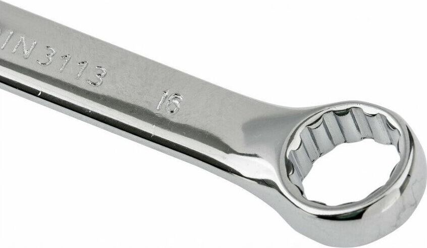 Комбинированный ключ Matrix 15160 размером 16 мм, из стали CrV, с покрытием «полированный хром», пригодится во время ремонтных работ дома или в гараже. С его помощью можно быстро монтировать и демонтировать крепежные элементы. Угол наклона кольцевого зева относительно плоскости инструмента составляет 15°, поэтому ключом удобно работать в труднодоступных местах.ПреимуществаВысокая деформационная стойкость — ключ изготовлен из хромованадиевой стали, а рабочая часть закалена до твердости 45 HRC.Защита от разрушения — полированное хромовое покрытие предотвращает образование коррозии.Аккуратная работа — накидные части с 12-гранным профилем охватывают всю поверхность крепежа, уменьшая риск деформации его граней.