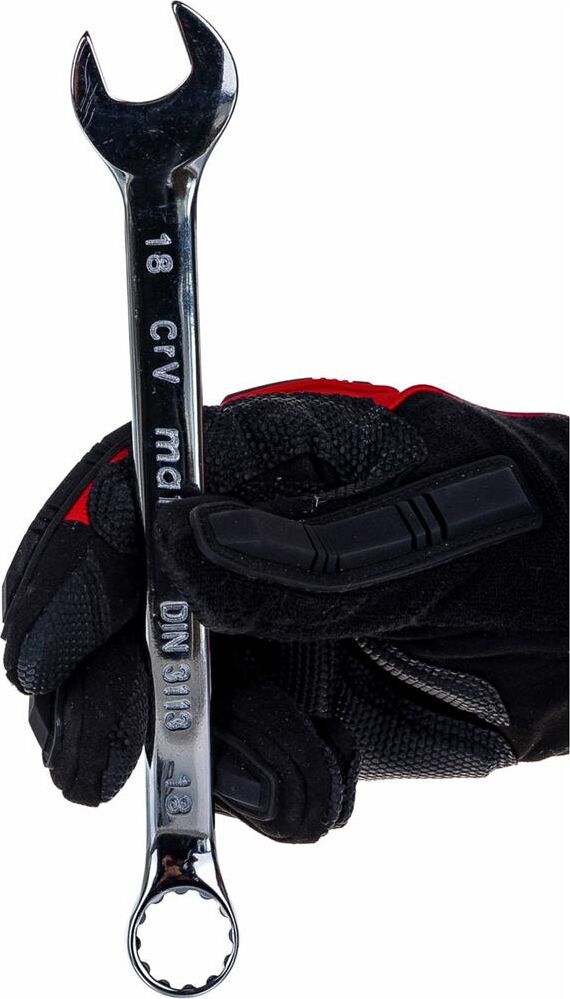 Комбинированный ключ Matrix 15162 размером 18 мм, из стали CrV, с покрытием «полированный хром», пригодится во время ремонтных работ дома или в гараже. С его помощью можно быстро монтировать и демонтировать крепежные элементы. Угол наклона кольцевого зева относительно плоскости инструмента составляет 15°, поэтому ключом удобно работать в труднодоступных местах.ПреимуществаВысокая деформационная стойкость — ключ изготовлен из хромованадиевой стали, а рабочая часть закалена до твердости 45 HRC.Защита от разрушения — полированное хромовое покрытие предотвращает образование коррозии.Аккуратная работа — накидные части с 12-гранным профилем охватывают всю поверхность крепежа, уменьшая риск деформации его граней.