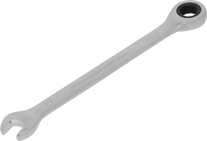 Комбинированный трещоточный ключ Matrix 14803 из стали CrV, с покрытием «зеркальный хром», размером 10 мм, позволяет быстро откручивать и закручивать болты и гайки. Рожковую часть удобно использовать там, где нет возможности полного охвата детали, а трещоточный механизм повышает удобство работы в труднодоступных местах. Преимущества Прочность — ключ из высококачественной стали 40CrV с храповым механизмом твердостью 58 HRC легко выдерживает интенсивные нагрузки. Коррозионная стойкость — зеркальное хромоникелевое покрытие защищает инструмент от воздействия влаги. Аккуратная работа — накидная часть с 12-гранным профилем полностью охватывает головку крепежа, что снижает риск деформации ее граней.