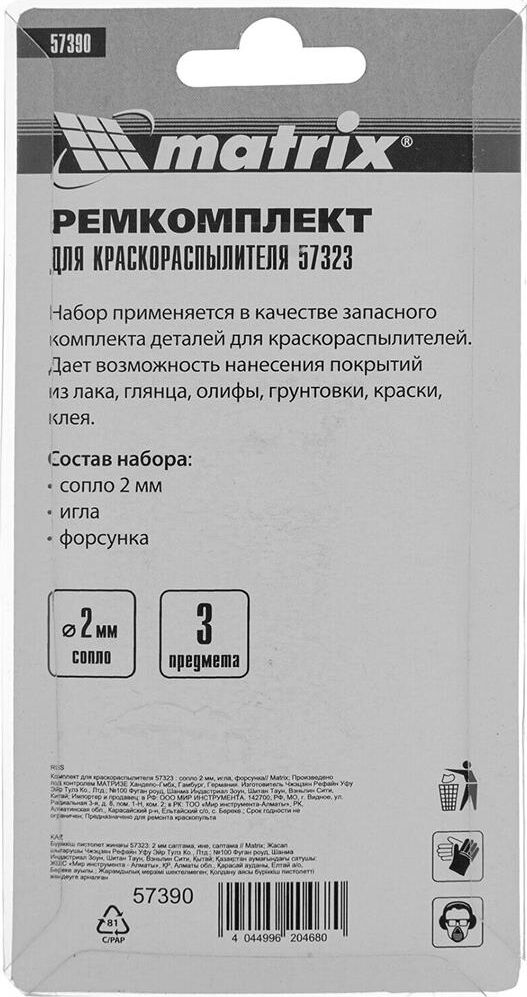 MATRIX Комплект для краскораспылителя 57323 : сопло 2 мм, игла, форсунка 57390